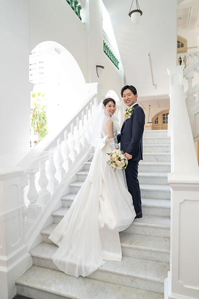 HY & NT 様におかれましては、当日は素晴らしいお天気に恵まれ、ラッフルズホテルでお二人の美しいお写真を撮ることができましたことを大変嬉しく、安心いたしました。